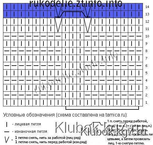 лиц.п.) перед 3 изн. п. провязать лиц.п., 3 изн. п. провязать лицевыми, а